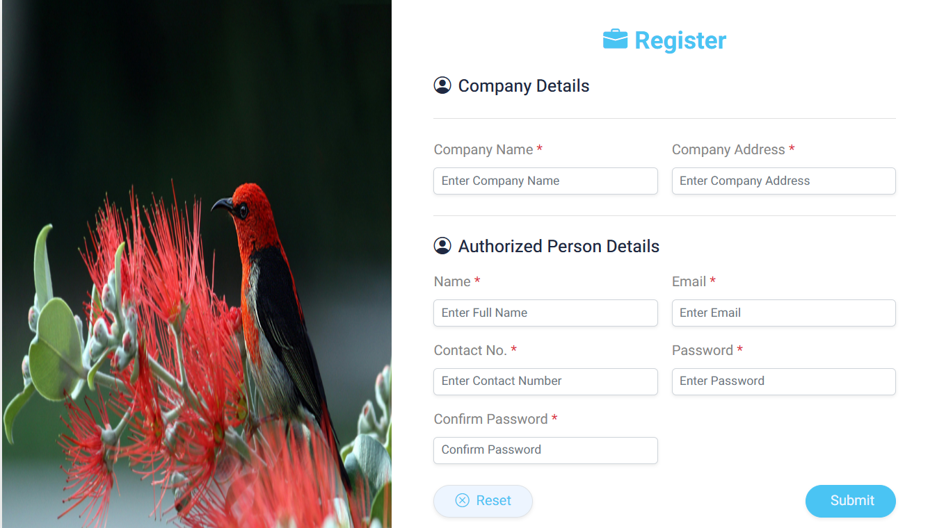 Register your organization to access the HRMS platform with custom modules. Set up your company profile, departments, and employee roles.